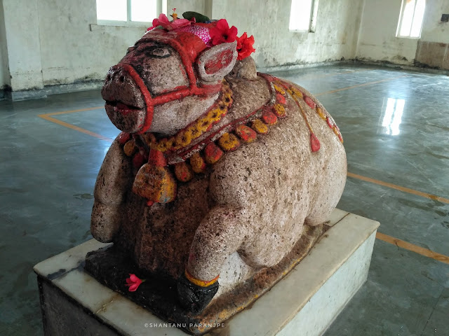 साधारण ३-४ किमीचा घाट संपवून आपण गाडी लावून मंदिराकडे जायला निघतो. सध्या मंदीराचे नुतनीकरणाचे काम चालू आहे त्यामुळे मंदीर फारच मोठे दिसते पण जुने मंदीर हे प्रत्यक्षात फारच छोटे आहे. मंदिराच्या बाहेर आवारात काही शिवलिंगे, विरगळ, नंदी, ओबडधोबड मूर्त्यांचे अवशेष आणि एक पाण्याचे टाके खोदलेले आपल्याला आढळून येते. त्यामुळे हा परिसर पुरातन असणार याची खात्री पटते.